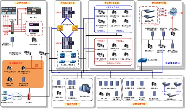 SITV 全公司非編制作網(wǎng)絡(luò )系統建設完成后,存儲系統將承擔數字電視咨詢(xún)類(lèi)節目的制作與播出任務(wù),它以非編制作業(yè)務(wù)流程為主線(xiàn),實(shí)現素材采集、剪輯制作、文稿編輯、播出分發(fā)等功能,涵蓋上載、剪輯、文稿、審片、播出、歸檔等工作流程。該數字電視網(wǎng)可提供標準規范接口實(shí)現與全臺網(wǎng)業(yè)務(wù)的互聯(lián)互通,與衛星收錄、編輯制作、播出系統之間具有快速互聯(lián)通道,為電視節目制播提供一個(gè)數字化、智能化、自動(dòng)化安全可靠的存儲技術(shù)平臺。