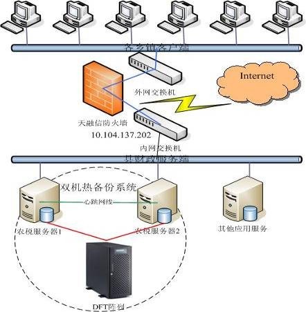 1)配備硬件各鄉鎮工作站至少配置一臺計算機,一臺針式票證打印機,有條件的地方,可加配一臺激光打印機??h級配置服務(wù)器和相應工作站用計算機、打印機相關(guān)設備;采用2臺知名品牌服務(wù)器做農稅系統應用服務(wù)器,數據存儲要求采用高性能,高安全性,具有數據保護功能的磁盤(pán)陣列存儲,要求采用國內知名品牌存儲設備。同時(shí)作為農稅關(guān)鍵應用系統,要求采用雙機熱備集群系統,以保證系統的不間斷持續運行。