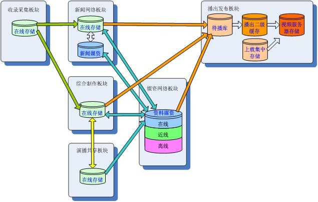 一套完整的節目制播系統大體分為節目制作——媒資入庫——節目播出三個(gè)過(guò)程。
