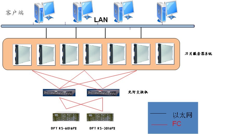 DFT憑借多年存儲產(chǎn)品制造和行業(yè)應用經(jīng)驗,為需要多機共享存儲的用戶(hù)設計了FC-SAN高可用存儲系統作為集中共享存儲的硬件平臺。