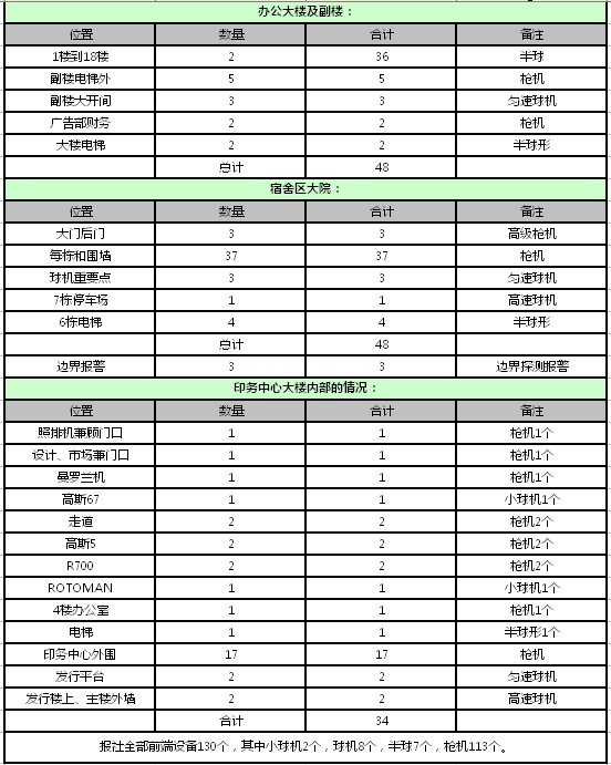 廣西日報社辦公大樓主樓及副樓屬于辦公區域,主樓18層每層樓兩個(gè)半球機,兩個(gè)電梯各一個(gè)電梯專(zhuān)用半球。副樓5層,除副3樓新聞網(wǎng)已有監控外,其余2,4,5層每層大開(kāi)間使用一個(gè)球機,其中副2樓廣告部需要增加2個(gè)槍機。副樓電梯外一個(gè)槍機負責電梯和每層的大門(mén)。網(wǎng)絡(luò )是除一樓沒(méi)有信息點(diǎn)外,主副每層樓都有網(wǎng)絡(luò )信息座。以上網(wǎng)絡(luò )屬于辦公區網(wǎng)絡(luò ),與宿舍區網(wǎng)絡(luò )物理隔離。