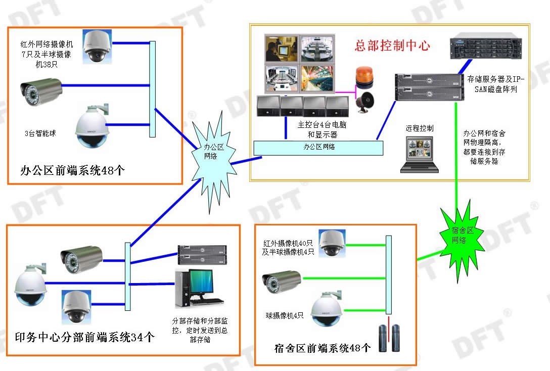 根據以上情況,整個(gè)日報社監控方案設計時(shí)候要注意兩個(gè)網(wǎng)絡(luò )的問(wèn)題:存儲設備要能存放兩個(gè)網(wǎng)絡(luò )的數據。