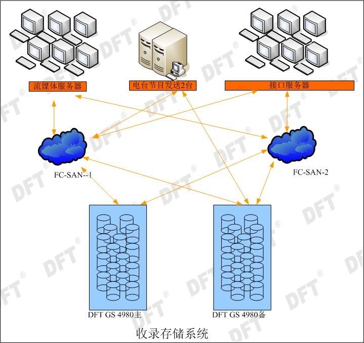 信息中心林主任表示:“在大樓建設初期,收錄系統中的數據都存儲在工作站中,安全問(wèn)題存在很大隱患性,任何一臺服務(wù)器宕機,系統都將面臨數據全部丟失的風(fēng)險。如何確保數據安全,成為新系統建設初期迫在眉睫需要解決的問(wèn)題。根據客戶(hù)的特別要求, DFT在其存儲解決方案中,存儲架構采用全冗余設計,通過(guò)主備交換機,將數據存儲到DFT磁盤(pán)陣列中,保證了鏈路和數據的安全性。目前DFT存儲產(chǎn)品可以滿(mǎn)足收錄系統的需求,并且在帶寬上還略有余量。”同時(shí)該存儲方案中又采用了DFT GS系列高端存儲產(chǎn)品,提供了滿(mǎn)足用戶(hù)需求的存儲帶寬,保障了存儲系統的穩定性,提高了存儲系統高可用性。由于該產(chǎn)品還支持高達224TB的存儲容量,為日后系統中增加節目提供了足夠的存儲空間,為整個(gè)收錄系統的穩定運行提供了堅實(shí)的基礎。