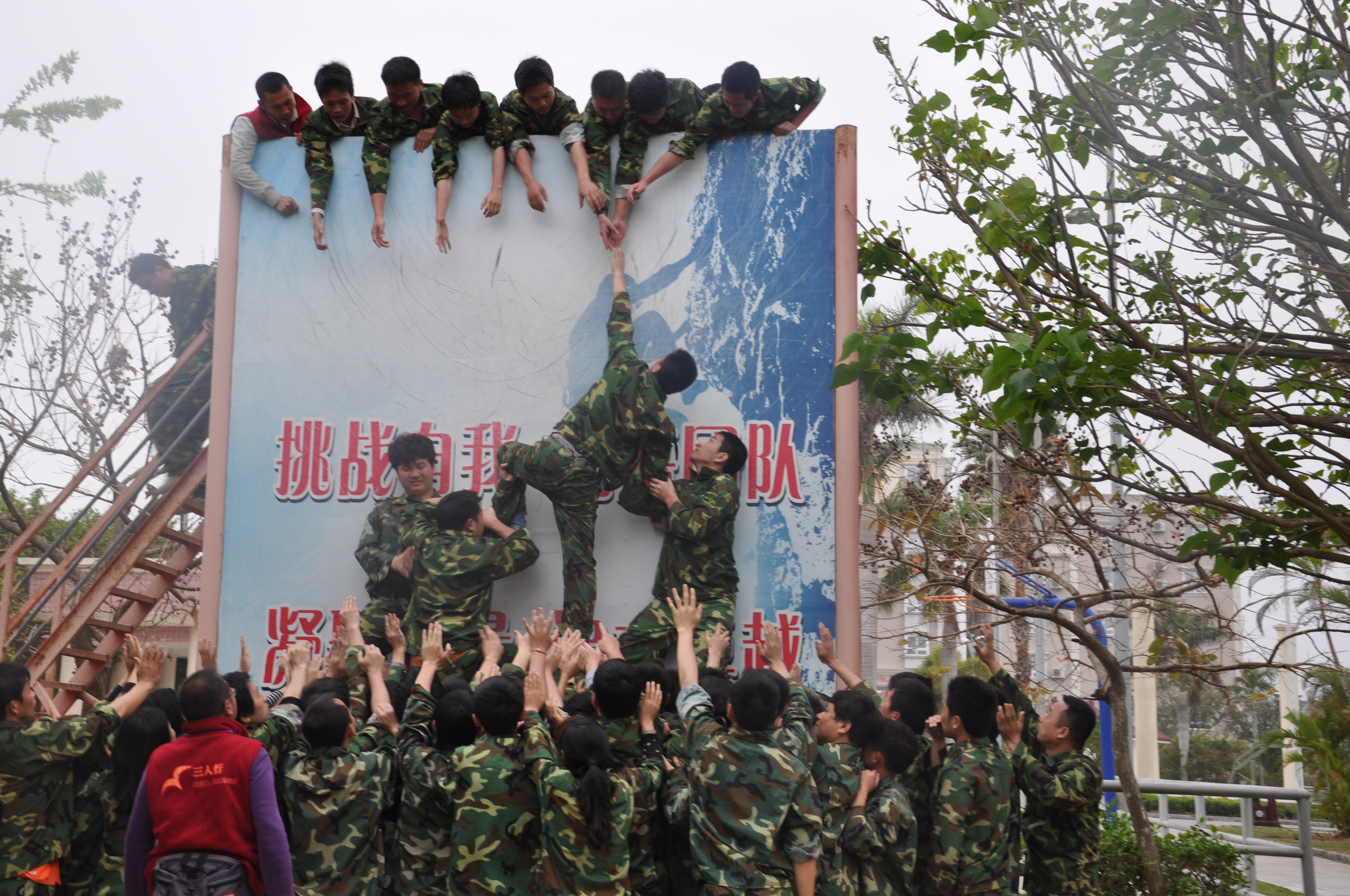 重點(diǎn)介紹一下最后一個(gè)項目,畢業(yè)墻。聽(tīng)到畢業(yè)墻可能第一反映就是畢業(yè)考試了,成績(jì)合格才能予以畢業(yè)。此畢業(yè)墻是指團隊在沒(méi)有任何器材的情況下共同努力翻越4.5米高的墻壁,而教練給我們還有一個(gè)要求便是不能說(shuō)話(huà),必須安靜的完成任務(wù)。此項目最重要的工具便是搭人梯,需借人梯的力量讓下面的同事一個(gè)個(gè)攀爬上去。整個(gè)項目看到了所有人拼勁全力的幫助每一個(gè)人,看到了他們手拉手勇敢向上攀登時(shí),我想沒(méi)一個(gè)人選擇放棄過(guò),沒(méi)有一個(gè)人后悔過(guò)。團隊的力量就是這么強大,只要勇敢向前,就有成功的機會(huì )。DFT的所有戰士都是最棒的!