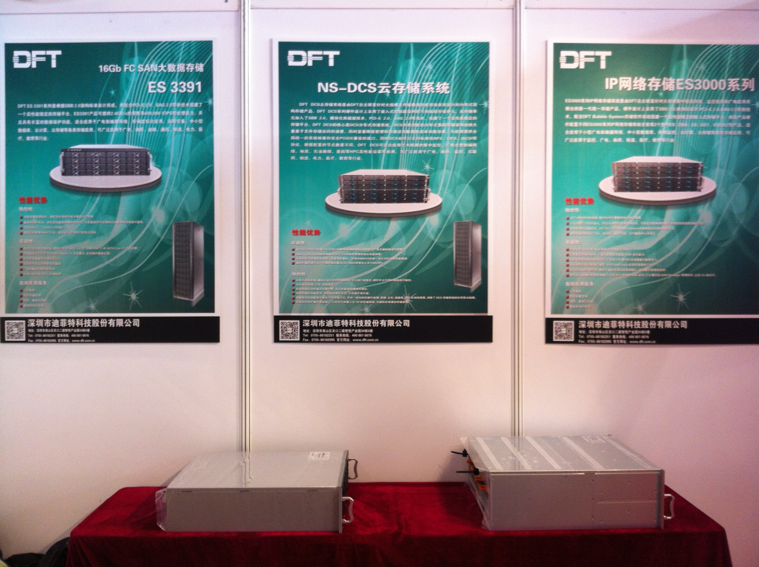 展會(huì )上,DFT帶來(lái)了自主研發(fā)存儲新品ES3000系列、云存儲系統NS-DCS及軍工行業(yè)典型成功案例。其中IP-SAN/NAS存儲產(chǎn)品ES3352與FC-SAN存儲產(chǎn)品ES3391為本次重點(diǎn)展示產(chǎn)品;同時(shí)配有專(zhuān)業(yè)的技術(shù)人員為參觀(guān)者詳細的介紹DFT最新產(chǎn)品的產(chǎn)品應用性能、原理及適用領(lǐng)域。展會(huì )現場(chǎng)十分火熱,吸引了來(lái)自解放軍四總部(總裝)及二炮等重要部門(mén)領(lǐng)導前來(lái)參觀(guān)交流,共同了解DFT產(chǎn)品及方案的技術(shù)實(shí)力。